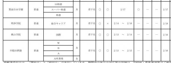大阪府と京都府,兵庫県の入試は特殊なことになっています。 多くの人が,その特殊性に気づいていないのです。 だって,気づかれたら中学校の先生がめんどくさいので,絶対にバレないように頑張っています。 唯一ウチの塾のブログだけ,本当のことを書いているので参考にしてください。 2月10日が大阪の私立高校の入試日と,誰もが知っていますが,多くの人はその日だけ,1回しかチャンスがないと思い込まされています。 実際は,その日の入試で不合格であっても,数日後に多くの私立高校が1.5次入試と称する入試をやっています。 昨年度の実施高校のpdfファイルをどうぞ ↓ 昨年の1.5次実施校 今年の実施校は2月6日にまとめて私立中学校高等学校連合のHPで発表されます。 たいてい,毎年同じような学校が実施しています。 大阪私中高連HP 金光大阪や早稲田摂陵(来年から早稲田大阪),清風高校や薫英,大阪成蹊など,いろいろ選べます。 昨年だと難関の清風高校を2月10日に受けて,リベンジで1.5次入試を2月15日に受けることも可能でした。 さらに16日に金光大阪や桃山学院,17日に箕面自由を受けることもできました。 さらにさらに,京都や兵庫の私学も同様に1.5次を実施するところがあり,それも含めて敗者復活戦をどう戦うか考えておくとよいのです。 が,しかし・・・ 中学校の先生にそんな話をすると,ほとんど人間でないような扱いを受けます。 高圧的に叱責されるかひどいいやがらせをされたり,無視されたり。 およそヒトの心を持った人間とは思えないような態度を,中学校の先生がするのです。 ホントですよ。 ぜひ,1.5次を受けると言って,それを確かめてください。 どうしてそうなるかは,明確な理由があって,それは「めんどくさい」からです。 全生徒が2月10日に絶対に合格する私立高校を受けてくれたら,入試の仕事はそれで終了。 あとは公立入試を指導するだけです。 なのに,1.5次を考えてチャレンジ受験し,不合格になったら他の学校の書類を作らないといけないのです。 めんどくさいです。 だから中学校の先生は1.5次入試があることを絶対に自ら進んでは生徒に言いません。 もし生徒や保護者に聞かれたらこう逃げます。 「1.5次は,毎年あるとは限らないからキケンだ!」とか。 昨年いやがらせされた生徒は「あなたのメンタルだと,10日の試験で落ちたら精神崩壊して立ち直れないぞ!」とか言われました。 これって,正常なことなのでしょうか? ほとんどの大阪府民の中学3年生とその親御さんは,今日書いた話を全く知らず,平和に学校で事前相談してOKをもらったところを受験します。 大学入試と比べてみてください。 関関同立とか産近甲龍を何回でも受けて,複数合格したら行きたい方に入金して入学するわけです。 私立高校もそうしないと競争にならないのです。 競争せずに公立中学校の先生が確実に生徒を輪切りにして割り振ってもらえる。 そして,無償化で授業料も税金で払ってもらえる。 大阪府の私立高校はなんとも幸せな企業なのです。 これって,正常なことなのでしょうか?(大切なことなので2回目) にほんブログ村 にほんブログ村