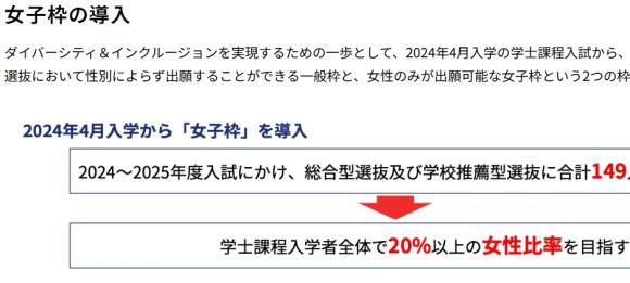 どこかで似たような話があって、大学の主として理工系学部における「女子枠」ですね。