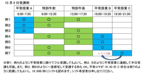 たとえば早朝に授業を受けて,さらに終日となると負担が大きいという場合,午前中のみという形態もアリにします。