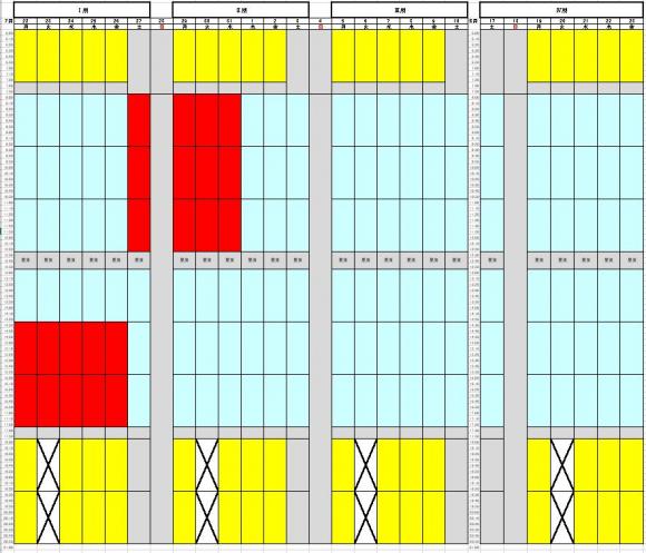 水色は講習授業,黄色は補講枠です。