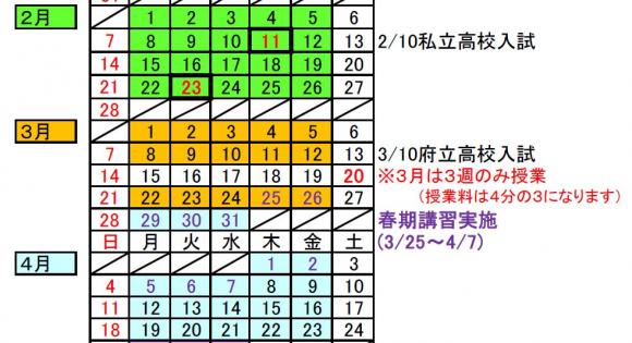 予定表にありますように,3月は3週間分しか授業をしませんので,授業料は4分の3になります。 入金のとき,お間違えないようお願いします。 たとえば普段33000円払っている人は24750円となります。 誤って多く入金された場合,4月分へ充当します。 また,4月に高校3年生になる人は,4月分から高3生の料金に変ります。 よろしくお願いいたします。
