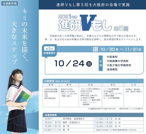 中学3年生が受けているVもしですが,第5回を外部で受験してもらおうと思います。