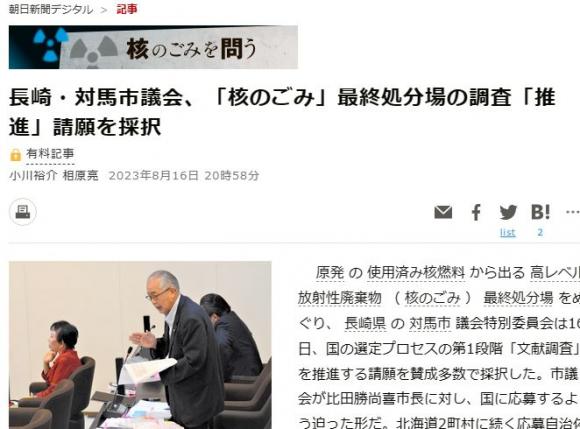 みたいな話なので,対馬市がゴミの保管の「調査」を受け入れるようです。