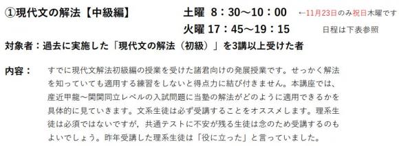 受講資格は1期の現代文解法(初級編)を受講した者に限ります。