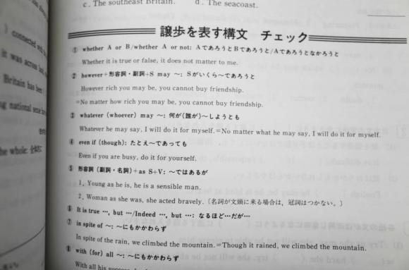 英語では譲歩の構文など。