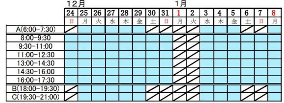 冬期講習をフルに受講できない塾生も,冬期講習のコマと平常枠のコマを受講していただけます。 ただし,8コマ以上受講する方に限ります。 実施期間:2023年12月24日(日)〜2024年1月8日(月) 実施コマ:下の表の水色部分のうち,各自受講している平常の授業以外のコマ 受講料:1コマ1,650円 (税込・教材費込) いつもの銀行口座に振り込んでください。 1月の平常授業料と同時にまとめて入金でもOKです。 内容:受講するコマ数に応じて個別に考えます。 (希望があれば相談に来てください) 要項・申込書はコチラ ↓ 冬期増コマ申込書