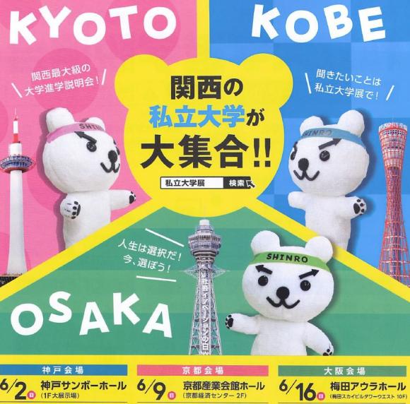 多くの私立大学の情報が一度に得られる説明会が6月に行われます。 神戸6/2,京都6/9,大阪6/16に分けて実施されるようです。 まだ受験は先のことのように考えている3年生も,そろそろ真剣に受験校を考えてもよろしいかと。 第一志望だけ受けるのではないのですからね。 第二志望,あるいはいわゆるスベリ止めも考えておきましょう。 チラシはコチラ ↓ 私立大学説明会 にほんブログ村 にほんブログ村