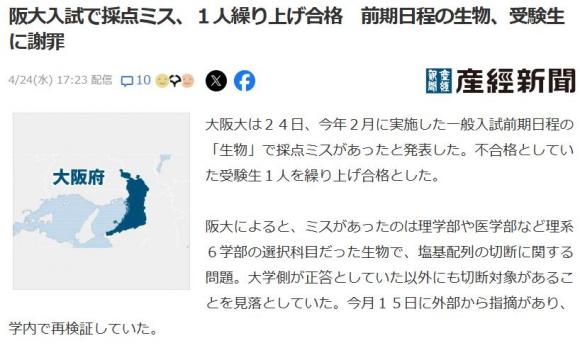 阪大ともあろう大学が,ちょっと恥ずかしい話です。