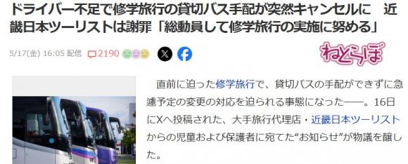 近ツリさんですが,運転手不足のためにバスが確保できない事態に。