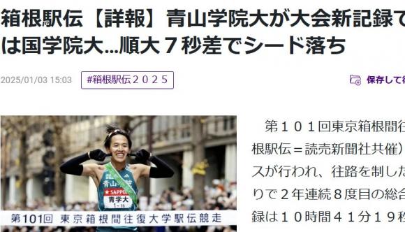 箱根駅伝は青学が連覇でした。