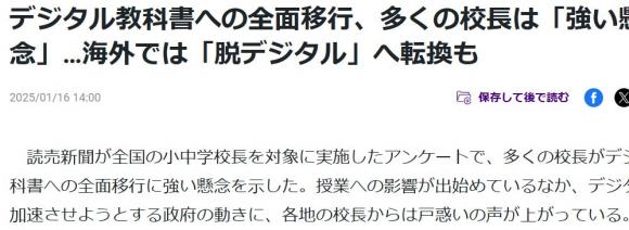読売の記事では,日本では,まだまだ抵抗勢力が多く,ほとんどの学校では紙の教科書を残すように希望しているようです。