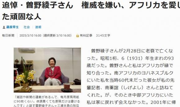 2025年03月10日 月曜日 曽野綾子さん ( 塾長ブログ )