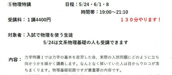 物理特講は,力学と電気分野で必ず押さえておきたい基本を講義します。