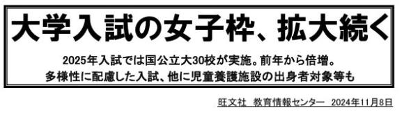ウチの女子塾生諸君には,このような女子枠で受験せず,まっとうな学力で勝負するようにクギ刺しておきますね。