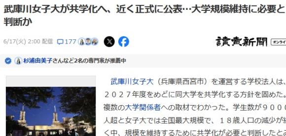 武庫川女子大が共学化するというニュースが出ました。 実はこの話,私などは裏情報ですでに知っていましたけど・・・ 園田女子大,神戸松陰女子大,神戸親和女子大,京都光華女子大につづいて,どんどん女子大が減っていきます。 京都のND女子大学や神戸海星女子は募集停止したし,女子大は共学化かつぶれるかの二択なのです。 次にウワサされているのは京都女子大ですね。 龍谷大と合わさるのか,単独で共学化かはわかりませんが・・・ 武庫川女子大が武庫川大学になるので,京都女子大学は京都大学に変更しましょう! 急に賢くなる??? にほんブログ村 にほんブログ村