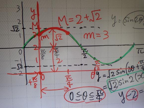 本日は三角関数についての授業を行いました。 受講した諸君は目からウロコの話だったのではないでしょうか。 べつに三角関数についてだけの話ではなく、数学全般に同じように適用できる手法を伝授しました。 正弦曲線の描き方も、少し時間を使って丁寧にやりました。 以外にちゃんと描いていない人が多いのです。 特に物理選択している人は波動の問題を解くときに絶大な威力を発揮しますからね。 練習してしっかりマスターしてください。 にほんブログ村 にほんブログ村