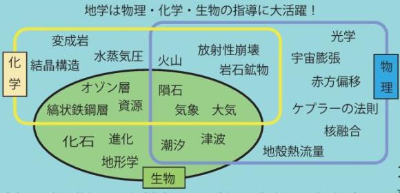 地学の内容をちゃんと理解していると,物理・化学・生物の指導を自信を持ってできるようになるのです。