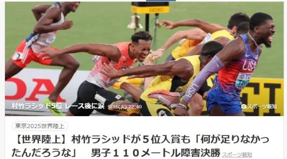 また世陸ネタですが、110mハードルで村竹選手が5位入賞。