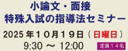 2025年09月19日 金曜日 10月19日は小論など特殊入試セミナー ( 塾長ブログ ) |