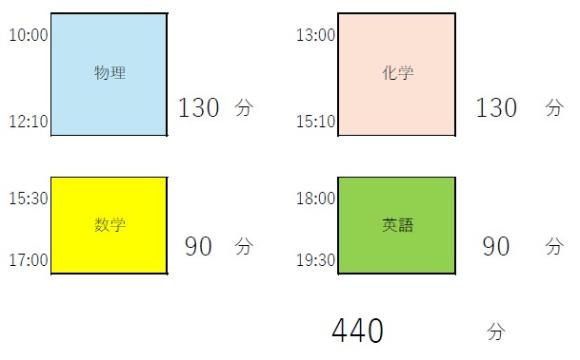 本日の塾は、高校特別講座だったので、物理・化学・数学・英語の4コマやりました。