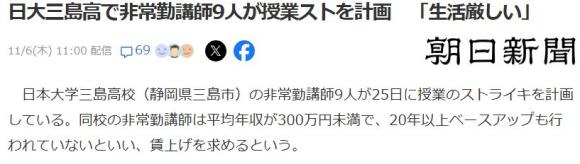 それで,日大三島高校の非常勤講師がストをするというニュース。