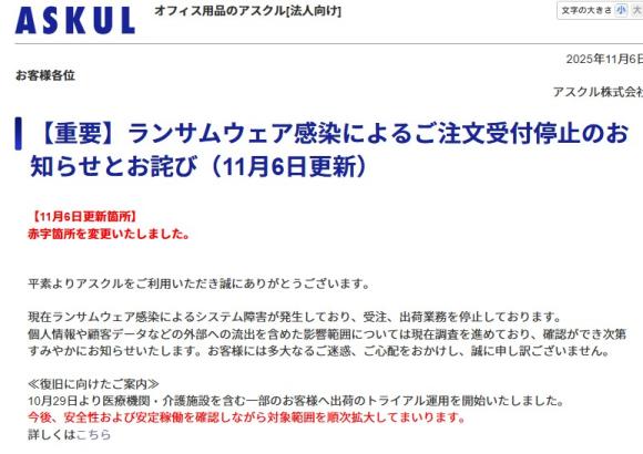 ウチの塾もアスクルさんから封筒とかファイルとか文房具を購入しているので,ウチの塾の情報が漏れているかも?