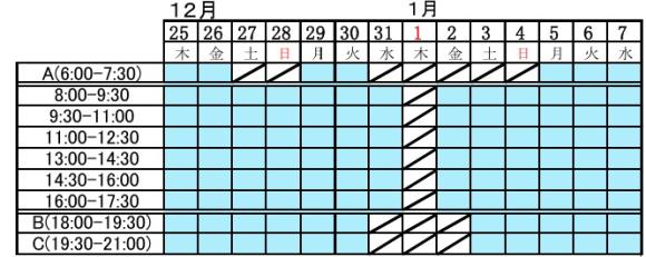 冬期講習期間に,昼間も朝夜の平常コマも自由に受講できます。 ガッツリ取れない1・2年生はこれをうまく利用して,少しでも勉強時間を増やしましょう。 1コマ単位で取れますが,総数8コマ以上を受講してください。 冬期スポット受講申込書