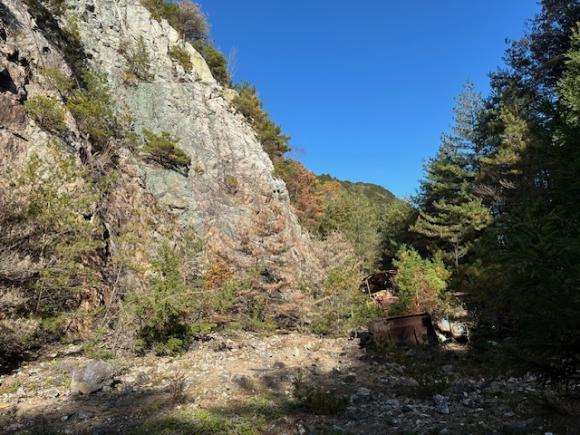 思ったより険しい山で、鎖場もあって、ほぼ滑落しながら鉱山跡にたどりつきました。