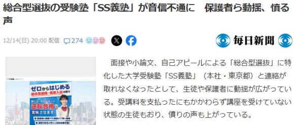 総合型系入試の「専門」を謳った塾が夜逃げしたようですぅ・・・