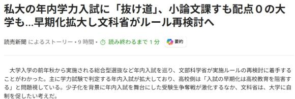近大は賢いので,「じゃあ,事前課題の小論文を義務付けます。配点は0だけどね」