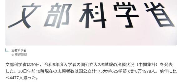 文科省の中間集計によると,国公立大志願者が昨年より少ないそうだ。