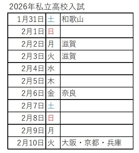 たしかに,大阪・京都・兵庫は「結託」して2月10日を入試日としていますが,滋賀県は別日程なのです。