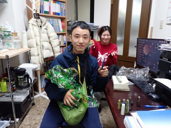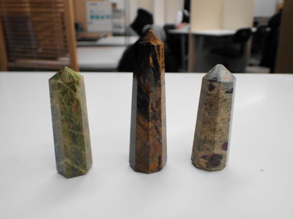 別班として活動していた塾生が卒塾して約2年。 突然,その一人が近況報告に来てくれました。 しかも,別班メンバーだった卒生が講師で来てくれている日に・・・ 約2年ぶりの再会となりました。 さすが,普通の人間とは次元が違って,先般インドに潜入してきたようで,何度か死にかけたそうです。 お土産を持ってきてくれました。 インドの神秘的な岩石・・・ タイガーアイっぽいのや,ザクロ石かバラ輝石の入ってるっぽいのやら。 日本ではあまり採れなさそうなモノですねぇ。 何か御利益がありそうなので飾っておくことにします。 この別班卒生,今度は休学してデンマークへ行き,ヨーロッパを旅する予定らしいです。 ただ無事を祈るだけです。 にほんブログ村 にほんブログ村