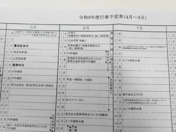 2026年04月09日 木曜日 年間予定表を持って来てください ( 塾長ブログ )