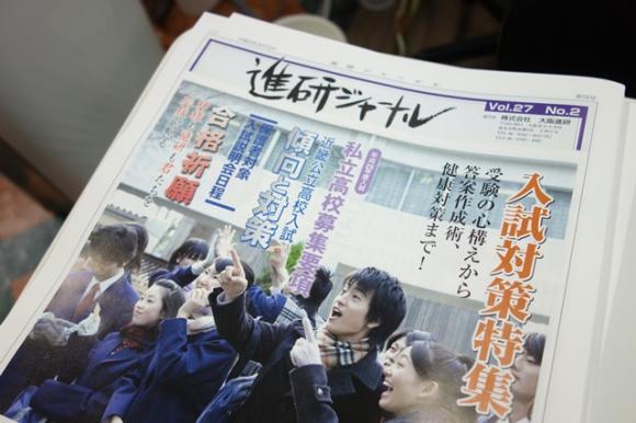 今日来る生徒から順に大阪進研発行の進研ジャーナルを持って帰ってもらいます。 ほとんど私立学校の広告みたいなものですが,入試相談会の一覧表くらいは役に立つかと・・・ 一般の説明会でなく「個別相談」に申し込むと,内申点やVもしの結果などで合否の判定(ハッキリとは言わないでしょうが,ニュアンスでわかると思います)もしてくれます。特待生の基準もビミョーに教えてくれたりします。