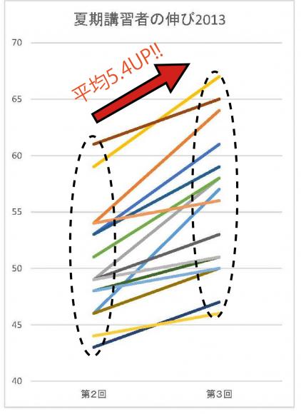 ちなみに,夏期講習を受講できなかった塾生の平均上昇は1.0しかありません。