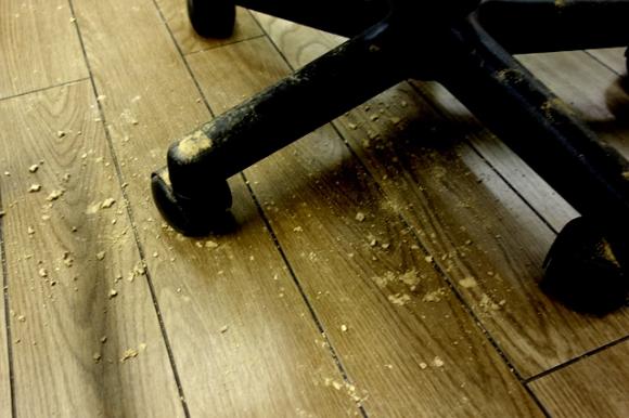 泥のいっぱい付いたくつで塾に来られると,授業のあとはこんな風になります。 そういう事に気づく力を学力といいます。 英語や数学の学力の前に,そういう学力をつけて下さい。 お願いします。